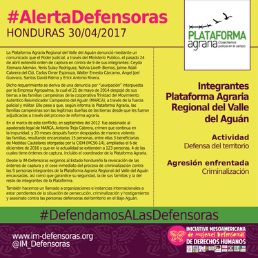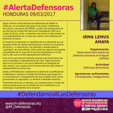 Postal #AlertaDefensoras COPINH actualizacion 16032016