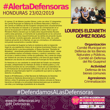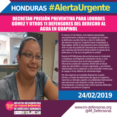 #AlertaDefensoras HONDURAS / Criminalización a la defensora Gladys Lanza
