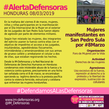 #AlertaDefensoras HONDURAS / Fuerzas de seguridad del Estado agreden a defensoras durante protesta pacífica el #25N