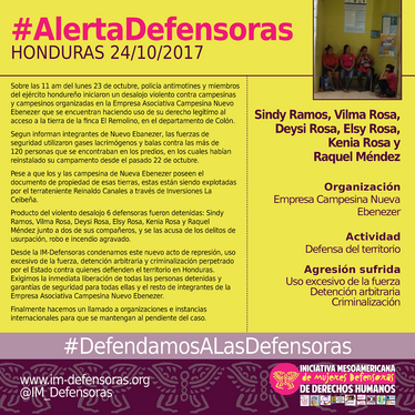 #AlertaDefensoras HONDURAS / Uso excesivo de la fuerza contra Integrantes Empresa Campesina Nueva Ebenezer