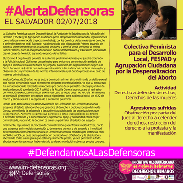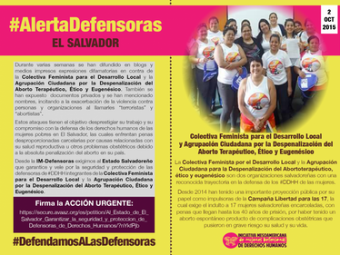 #AlertaDefensoras EL SALVADOR / Firma por la seguridad y protección a la Colectiva Feminista para el Desarrollo Local y la Agrupación Ciudadana por la Despenalización del Aborto Terapéutico, Ético y Eugenésico