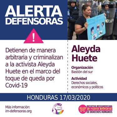 #AlertaDefensoras HONDURAS / Sonia Isabel Gáleas, Gerardina Santos Hernández y Norma Suyapa Herrera