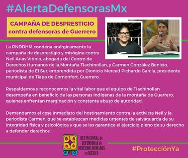 #AlertaDefensoras MÉXICO / Rita Amador, Meztli Sarabia e integrantes de "UPVA 28 de Octubre"