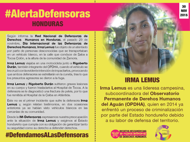 #AlertaDefensoras HONDURAS / Nuevo ataque contra la defensora Irma Lemus: atentan contra su vida