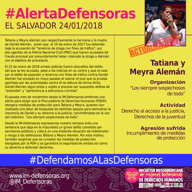 Bertha de León es una abogada de derechos humanos que, hasta marzo de este año, trabajó para la Fundación de Estudios para la Aplicación del Derecho (FESPAD). Bertha ha estado involucrada en varios casos de alto perfil, incluyendo una demanda penal por malversación, enriquecimiento ilícito y desobediencia contra el ex presidente de El Salvador, Francisco Guillermo Flores Pérez. Pedro José Cruz es abogado de derechos humanos y presidente de la Asociación Salvadoreña de Derechos Humanos (ASDEHU), una organización que ofrece acompañamiento legal a víctimas de violaciones de derechos humanos. El 2 de junio de 2016, Pedro José Cruz y Bertha de León se habían reunido con un periodista, cuando se dieron cuenta de que estaban siendo perseguidos y que su conversación estaba siendo grabada por un desconocido.  El 8 de junio de 2016, el defensor y la defensora fueron objeto de vigilancia y perseguidos por hombres no identificados fuera de la Corte Penal de San Salvador, donde ejercen la representación legal de sus clientes en varios casos de corrupción contra el empresario Enrique Rais López. El mismo día, el abogado de este último los había demandado a ambos por difamación.  Estos incidentes son los más recientes en una serie de actos de intimidación y hostigamiento en contra de la abogada y abogado. El abogado y la abogada de derechos humanos representan en defensa legal a la pareja Mario Calderón y Claudia Herrera, quiénes tienen varios procesos penales nterpuestos por el empresario Enrique Rais. El anterior abogado de la pareja, René Medrano, renunció después de haber sido acosadojudicialmente, detenido durante tres días y haber tenido su oficina saqueada en la noche por unos desconocidos en 2015. Medrano ha dejado el país con su familia como consecuencia de las amenazas. Desde la Red Salvadoreña de Defensoras de Derechos Humanos exigimos una investigación inmediata, exhaustiva e imparcial sobre los actos de intimidación contra Pedro José Cruz y Bertha de León, así como se tomen todas las medidas necesarias para garantizar la integridad física y psicológica de ambos.