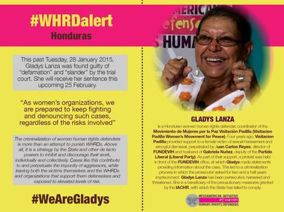 #WHRDAlert HONDURAS / Criminalization against Gladys Lanza
