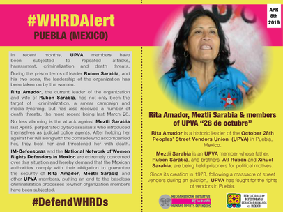 #WHRDAlert MEXICO / Repeated attacks against Rita Amador, Meztli Sarabia and members of UPVA “28 de octubre”