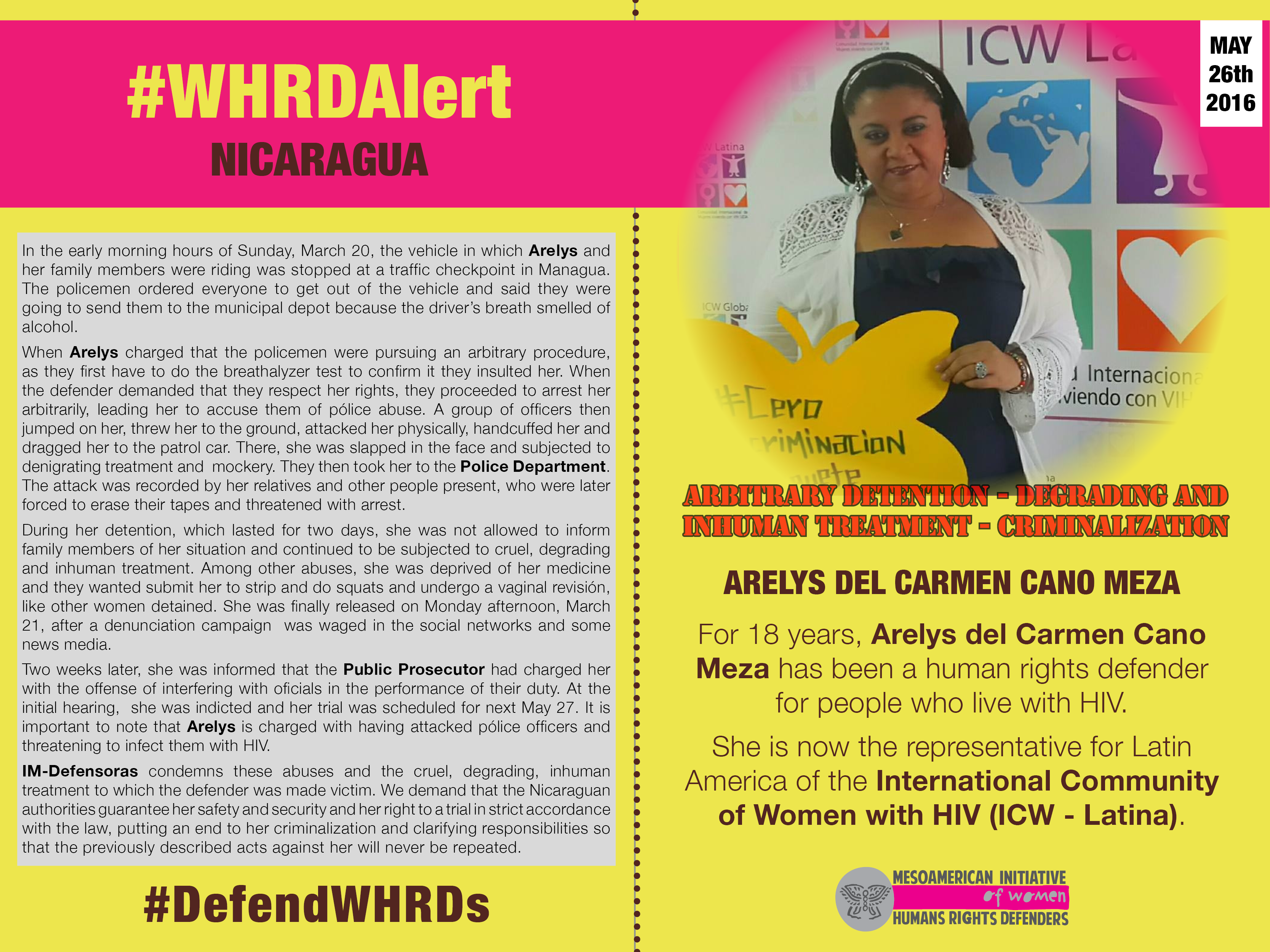 #WHRDAlert NICARAGUA / Arbitrary Detention; Degrading treatment, cruel and inhumane; and criminalization against Arelys Cano Meza