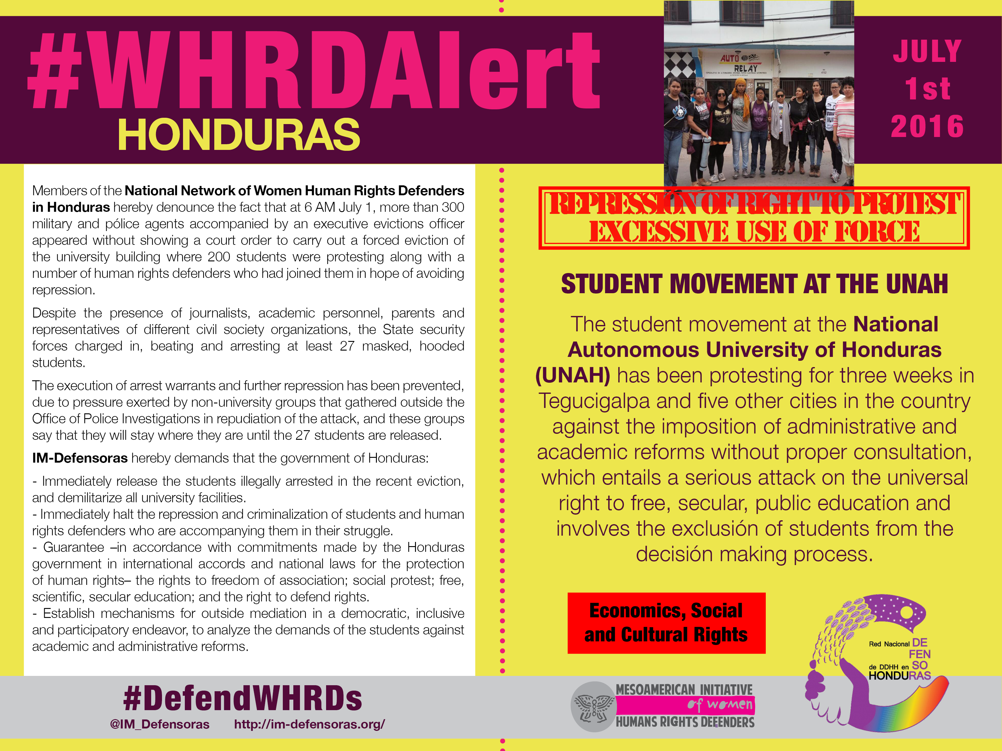 #WHRDAlert HONDURAS / Repression of UNAH student movement’s right to protest