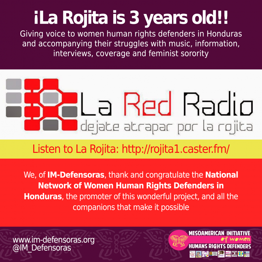 On Wednesday, January 25th, La Red Radio-La Rojita, an internet radio station of the National Network of Women Human Rights Defenders in Honduras, celebrated its three years of existence giving voice to women human rights defenders in Honduras and accompanying their struggles with music, information, interviews, coverage and feminist sorority.