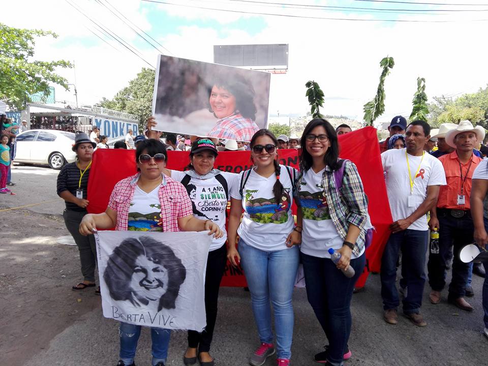 The proof that #BertaLives one year after the seed of her body was sown, is much more than a proclamation; it is an unquestionable, irrevocable reality. As of March 1st, the first day of actions convoked by COPINH, her presence in the streets, in all kinds of news media, and in social networks was impossible to summarize in one article. Humanity is gradually awakening, heeding the call sent out by Berta, who never ceases to multiply and be present wherever a woman is defying mandates and exercising her right to be, to struggle, to dream and to work to make her dream come true of a better world for herself and all people everywhere.