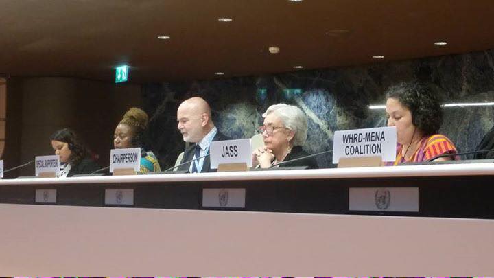 Our comrade Marusia López, a member of JASS and IM-Defensoras, was in charge of presenting and moderating a roundtable attended by our Co-Coordinator Alejandra Burgos; Alda Facio, of the Working Group on Discrimination against Women; the Rapporter on the Situation of Human Rights Defenders, Michel Forst; Winnet Shamuyarira, of JASS Southern Africa; and Farah Salka, of WHRD-Mena, as a representative of the Miiddle East and North Africa.