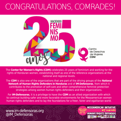 For IM-Defensoras, it is a privilege to have the CDM as an allied organization with which to continue building safer and more favorable environments for the Mesoamerican women human rights defenders and to lay the foundations for a freer, fairer and egalitarian world.