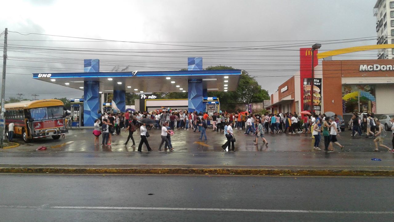Just before getting to the point where the march was to end, rain dispersed the crowd. Most people took shelter in a gas station, which turned into a space for a fiesta and a platform for the closing ceremony.