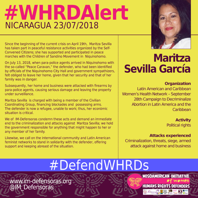 We of IM-Defensoras condemn these acts and demand an immediate end to the criminalization and attacks against Maritza Sevilla; we hold the government responsible for anything that might happen to her or any member of her family.