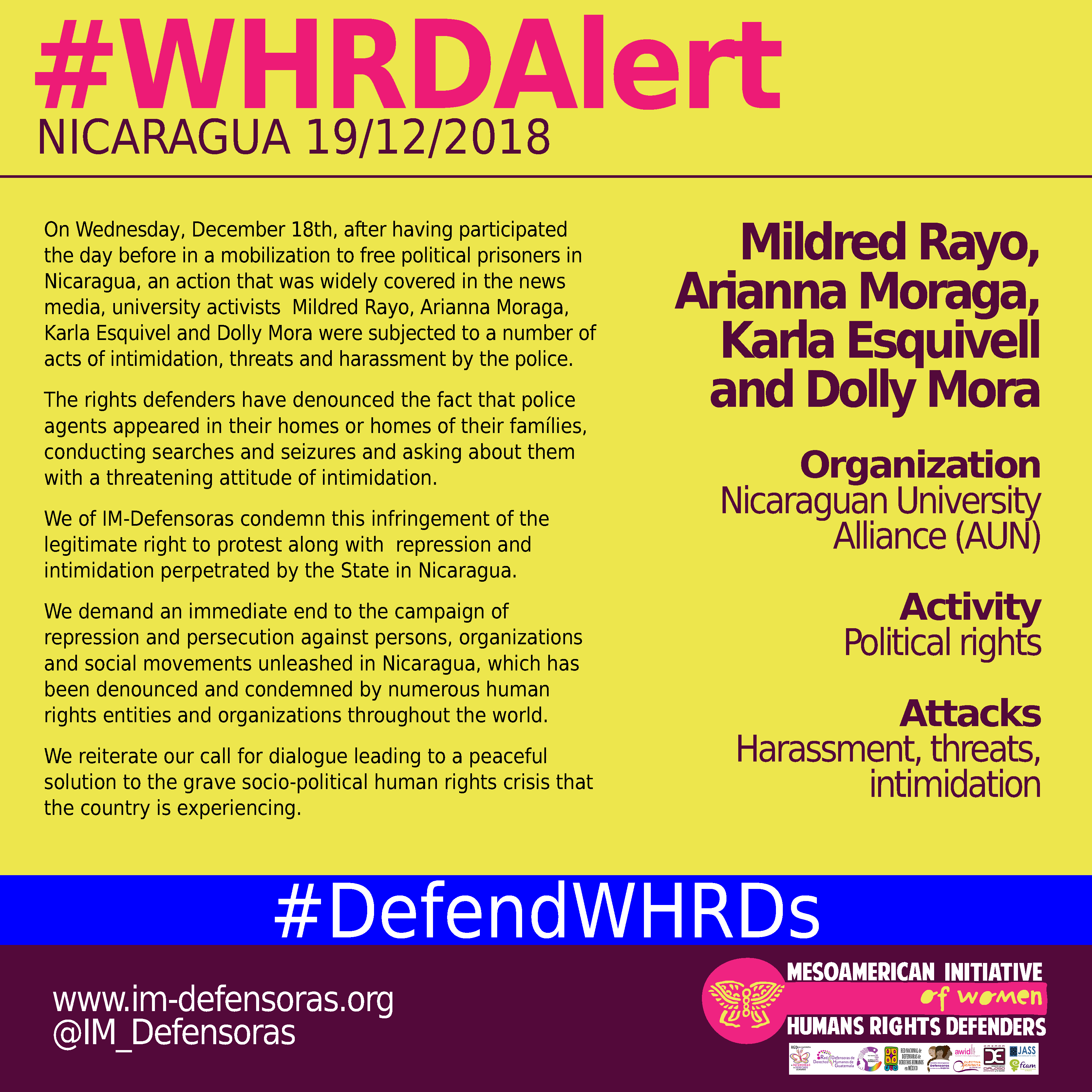 We of IM-Defensoras condemn this infringement of the legitimate right to protest along with repression and intimidation perpetrated by the State in Nicaragua.