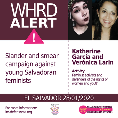 We of IM-Defensoras and the Salvadoran Network of Women Human Rights Defenders extend our solidarity to Katherine García and Verónica Larin and gratefully acknowledge their contribution to the defense of the rights of women and youth.