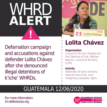 FACTS – Lolita Chávez is being targeted through a defamation campaign and accusations on social media after publicly denouncing the illegal detention of k'iche' women defenders in the context of the State of Emergency declared by the government in three Sololá municipalities.