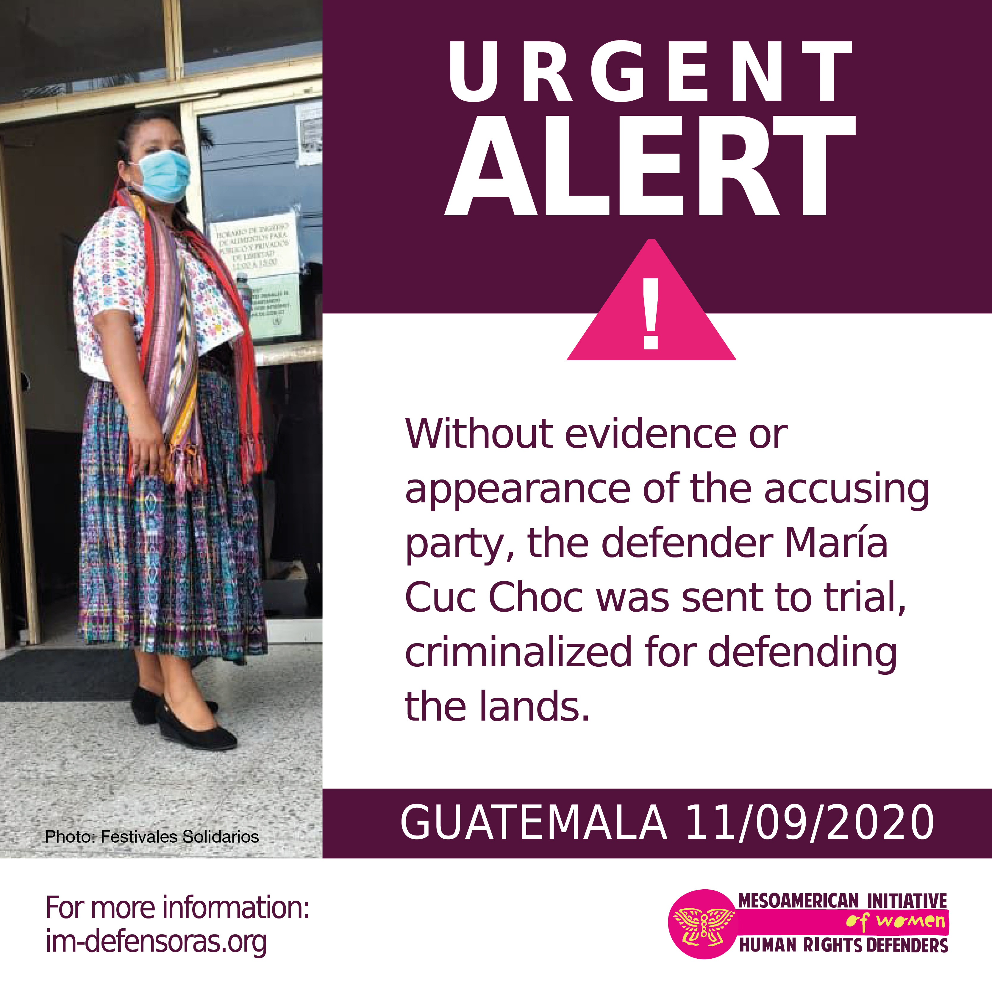 We of IM-Defensoras express our solidarity and recognition of the work of defender María Cuc Choc, we denounce the injustice and arbitrary nature of this judicial decision, and we demand an end to the criminalization process against her.