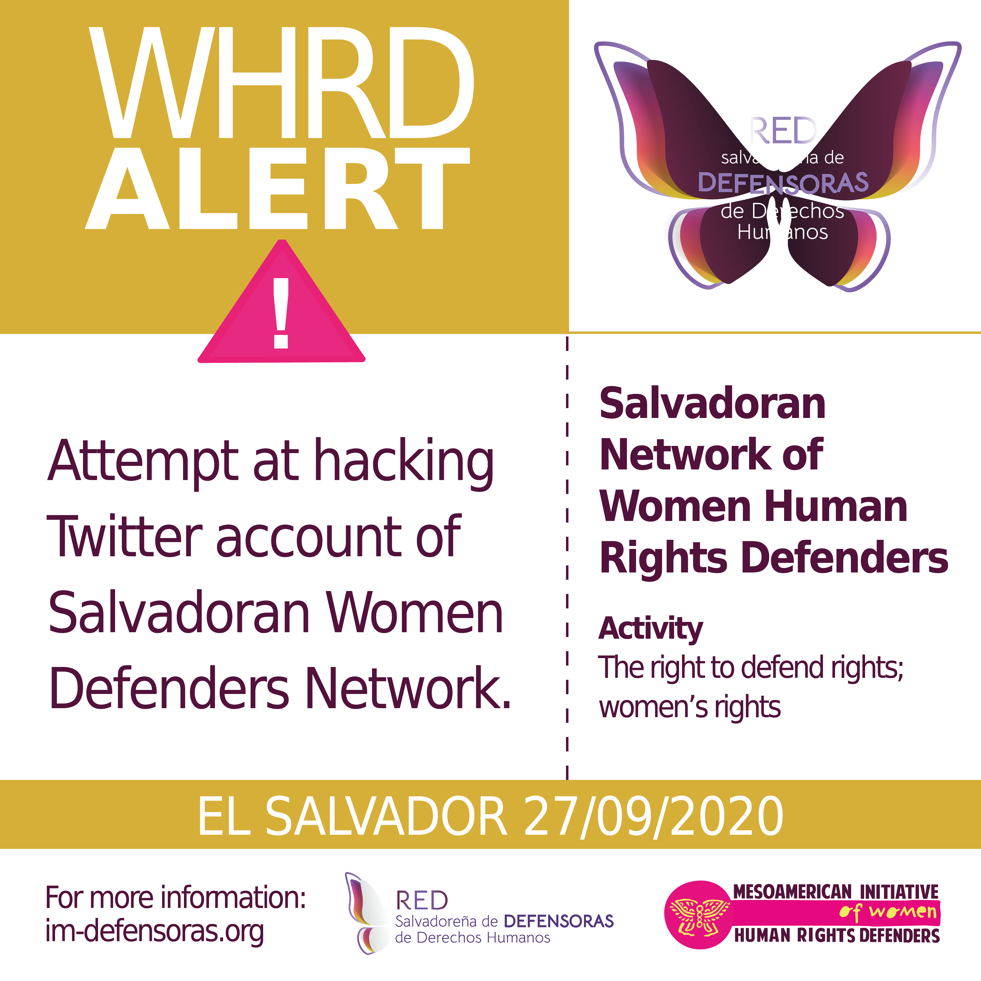 THE FACTS – In the early morning hours of Friday, September 25, the Twitter account of the Salvadoran Network of Women Human Rights Defenders was subjected to several hacking attempts.