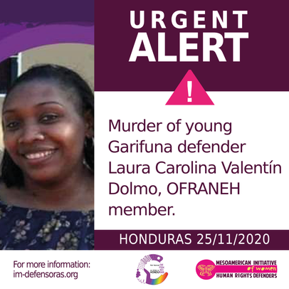 We of IM-Defensoras and the National Network of Women Human Rights Defenders in Honduras feel the pain brought about by the murder of this young defender, and we extend our solidarity to OFRANEH and the Garifuna people of Honduras.