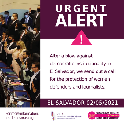 This situation accentuates the lack of protection ot women human rights defenders in El Salvado, especially in a situation with a number of foreseeable legitimate expressions of rejection and social protest concerning this strike against democratic institutions, both in the streets and in social networks and news media.