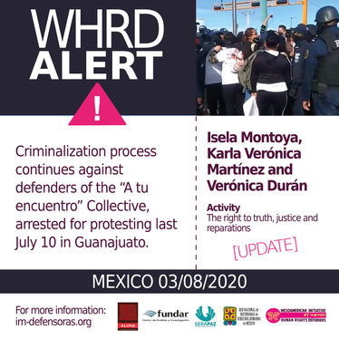 [WHRD Alert - UPDATE] MEXICO / Criminalization process continues against defenders of the “A tu encuentro” Collective, arrested for protesting last July 10 in Guanajuato.