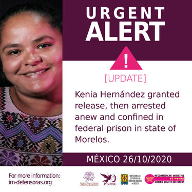 [Urgent Alert] MEXICO / UPDATE: Kenia Hernández granted release, then arrested anew and confined in federal prison in state of Morelos