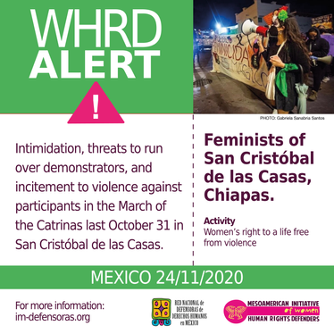 [WHRD Alert] MEXICO / Intimidation, threats to run over demonstrators, and incitement to violence against participants in the March of the Catrinas last October 31 in San Cristóbal de las Casas.