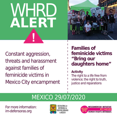 [WHRD Alert] MEXICO / Constant aggression, threats and harassment against families of feminicide victims in Mexico City encampment