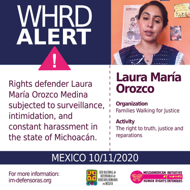 [WHRD Alert] MEXICO / Rights defender Laura María Orozco Medina subjected to surveillance, intimidation, and constant harassment in the state of Michoacán.