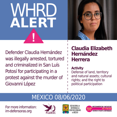 [WHRD Alert] MEXICO / Defender Claudia Hernández was illegally arrested, tortured and criminalized in San Luís Potosí for participating in a protest against the murder of Giovanni López