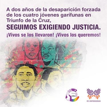¿Hagaña-san? ¿Dónde están? A dos años de la desaparición forzada de cuatro jóvenes garífunas seguimos exigiendo respuestas.